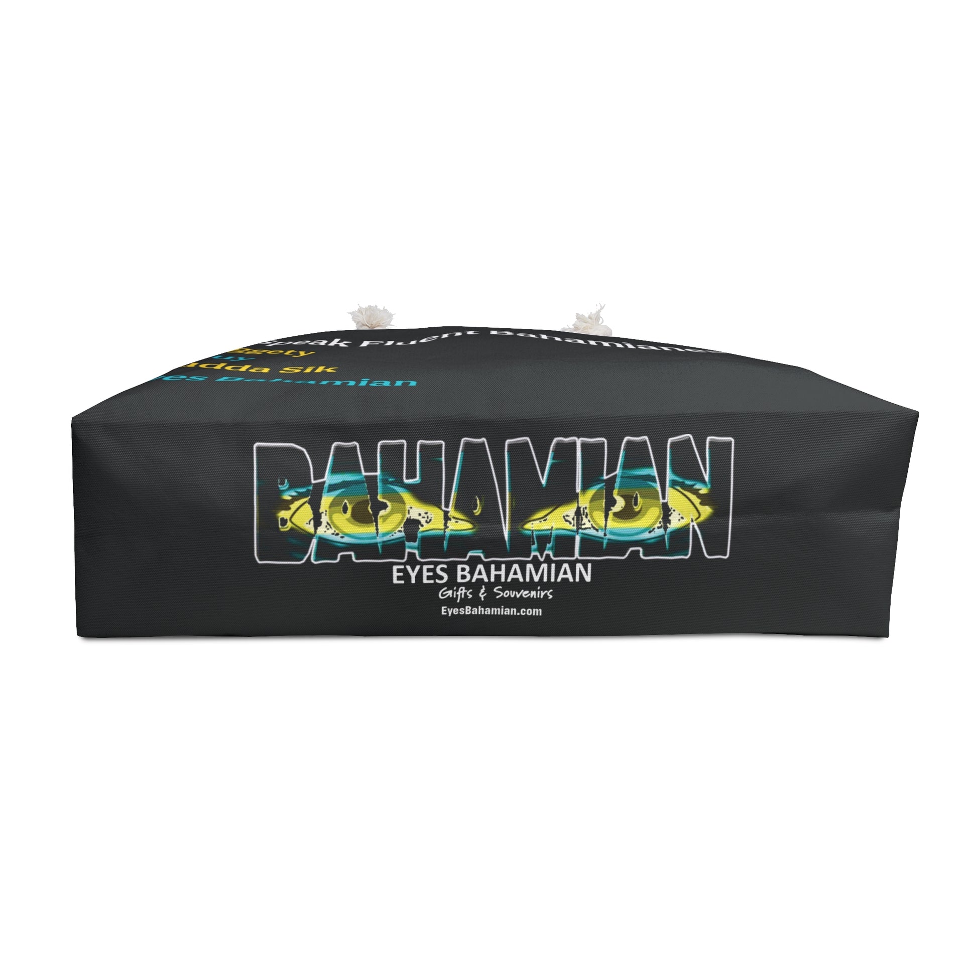 - Rope handles: 27" long, cream-colored rope handles fed through gold color metal grommets